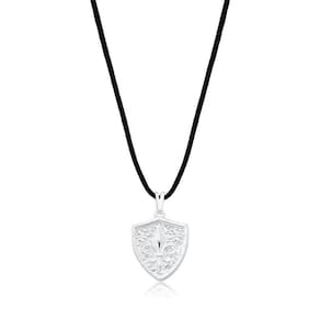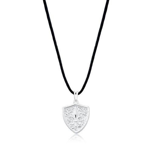 A VL traz esse símbolo cheio de significados, em um pingente em forma de escudo, acompanhado de cordão de algodão preto com ponteiras metálicas. Todos os metais foram revestidos em Prata.