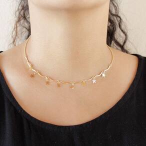 Elegante Colar Estrelas com Arcos Semijoia Banho de Ouro 18K. As peças recebem um tratamento hipoalergênico, pensando especialmente em nossos clientes, embalado individualmente com embalagens personalizadas preparado com muito carinho acompanhado pelo certificado de garantia. Perfeito para embelezar e completar seu estilo com delicadeza e sofisticação. Confira as dimensões: Altura: 0,1 cm , Largura: 0,6 cm , Comprimento: 43 cm , Peso: 3,4 g
