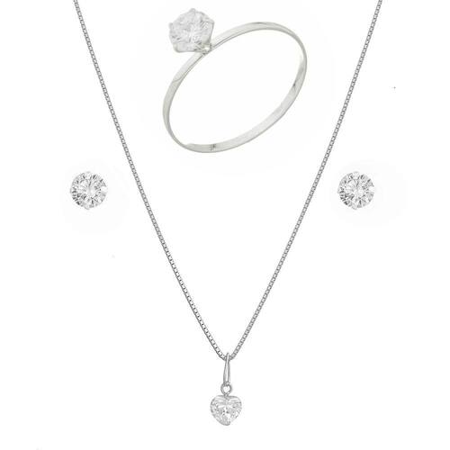Colar Feminina 50cm Prata 925 Conjunto Brinco Pingente Anel - Tamanho: 24