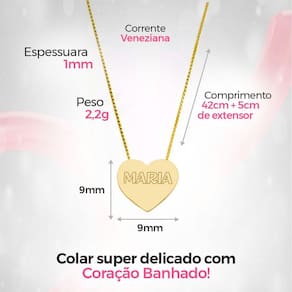 Colar feminino aço dourado + pingente personalize coração Kit presente personalizado orizom maria - colar em aço inoxidável dourado com pingente de coração e caixa premium personalizável