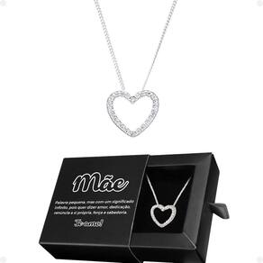 Colar Feminino Aço Strass Mãe Pingente Coração Caixa Moda