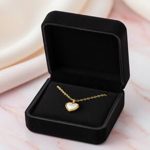 Encante-se com a delicadeza e sofisticação deste colar coração com madreperola, banhado a ouro 18k. Uma joia charmosa, elegante e perfeita para qualquer ocasião.