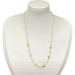Colar Feminino Semi Jóia Juliana Prado com Detalhes em Estrelas e Pérolas – Elegância e delicadeza para realçar seu estilo. Esse colar apresenta uma corrente dourada fina, adornada por pequenas estrelas vazadas intercaladas com pérolas naturais, criando um visual sofisticado e moderno. Ideal para ocasiões especiais ou para dar um toque refinado ao look do dia a dia. Produzido com materiais de alta qualidade, garante brilho duradouro e resistência à oxidação. Um acessório que combina facilmente com diferentes estilos, valorizando sua feminilidade.