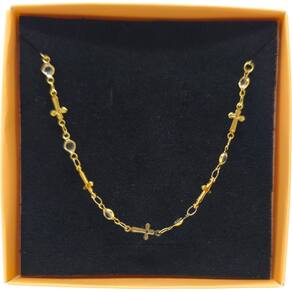 Descubra o Colar Feminino Cruz 45 Cm Semi Jóia Juliana Prado, uma peça que une estilo, significado e versatilidade. Com design delicado e moderno, este colar em banho dourado apresenta múltiplas cruzes ao longo da corrente, simbolizando fé e proteção de forma elegante. Seu comprimento de 45 cm é perfeito para usar sozinho ou combinar com outras joias, valorizando qualquer look do dia a dia ou ocasiões especiais. Produzido com materiais de alta qualidade, garante durabilidade e resistência ao desgaste, mantendo o brilho por muito mais tempo. Uma escolha certeira para mulheres que buscam um acessório com significado e sofisticação.Eleve sua expressão pessoal com um acessório que traduz personalidade e elegância.