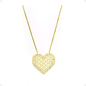 1 colar feminino em aço inoxidável, na deslumbrante cor dourada. 1 pingente em aço inox, ricamente adornado com strass transparente em forma de coração. 1 caixa premium Orizom Maria, contendo uma mensagem especial para demonstrar todo o seu afeto ao SEU AMOR!
