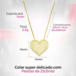 Este colar com pingente de coração não é apenas um presente, é uma expressão tangível de seu amor incondicional. Cada detalhe foi cuidadosamente escolhido para transmitir sentimentos profundos de carinho e apreço. Imagine a emoção no rosto do SEU AMOR ao receber este presente tão especial, um símbolo de amor eterno e cuidado. Não perca a oportunidade de demonstrar seu amor de forma única e inesquecível. Aproveite agora para adquirir este presente exclusivo e surpreender SEU AMOR como nunca antes!