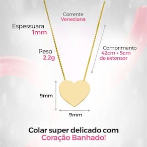 Adquira agora mesmo o Colar Placa Coração e adicione um toque romântico e sofisticado ao seu estilo. Presenteie aquela pessoa querida com uma joia que transmite sentimentos sutis e genuínos. Não perca a oportunidade de destacar-se com este acessório encantador. Compre já e deslumbre-se com o encanto deste colar incrível!