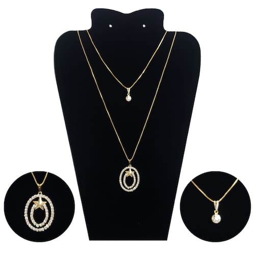 Colar Feminino Duplo Dourado Folheado a Ouro 18k Duplo Oval