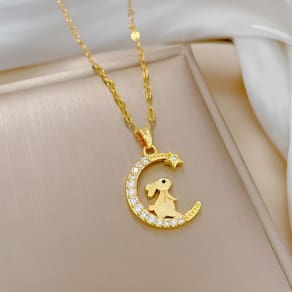 Colar Feminino Khloe Pingente Coelho E Lua Banhado Ouro 18k