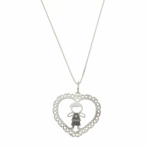 O colar possui um coração vazado com Menino no centro em prata, combinação perfeita com a corrente veneziana. É uma joia que pode ser usada em diversas ocasiões, desde eventos formais até o dia a dia.