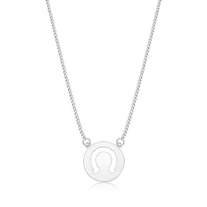 Este colar foi todo elaborado em aço inox, com uma medalha lisa de ferradura, acompanhada de uma corrente de elos portugueses, garantindo beleza e conforto, ideal para o dia a dia. Modelo unissex.
