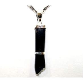 Pingente Amuleto Figa Obsidiana Negra, lapidação totalmente artesanal com polimento vibrado, montagem feita no pingente com envolto prateado
