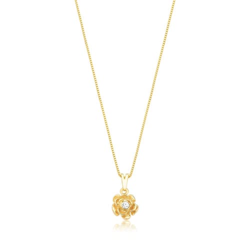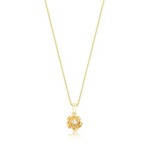 Este colar foi elaborado com um lindo pingente de flor com cristal branco, em corrente clássica veneziana, que garante um brilhe sutil e refinado.