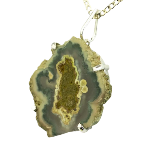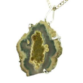 Pingente Flor de Ametista Pedra Natural Garra Prateado, Pingente Chapa de Estalactite com acabamento Liso montagem na garra com perinha para passar o cordão Pedra Genuina com origem garimpo lapidação e montagem manual.