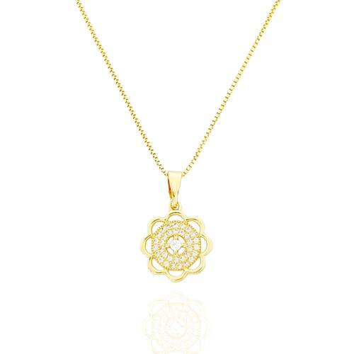 Dados técnicos: Semijóia banhada a ouro Comprimento: 45cm mais 5cm de extensor Tamanho do pingente: 1,4cm Marca: Lys Lazuli Garantia: 2 anos (Esta garantia cobre apenas o banho. Quebra, amassado, arranhado ou mau uso não estão cobertos por esta garantia) Peça antialérgica Classe da peça: Semijoia