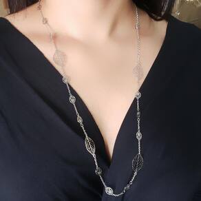 Colar Folha 75cm 1012 Colar Folha: corrente medindo 55 cm com folhas medida de 2cm altura e detalhe oval com 1cm de altura mais 20cm de extesnor regulável 10 de cada lado