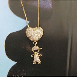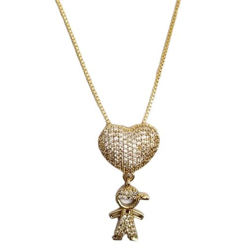 Colar folheado menino - marca Belíssima moda e acessórios - descrição Colar folheado menino Esse colar, é aquele modelo que é impossivel não se apaixonar. Colar dourado com pingente que representa um menino, todo crajedado, é uma peça diferenciada e encantadora. Quem tem filho a sabe o quanto esse modelo simboliza o amor de mãe, que é infinito Também é uma ótima opção para presentear quem você ama. Informações técnicas Material : zamac Cor: dourado Altura: 1 cm Largura: 1,5 cm Comprimento: 28 cm Peso: 3 gramas