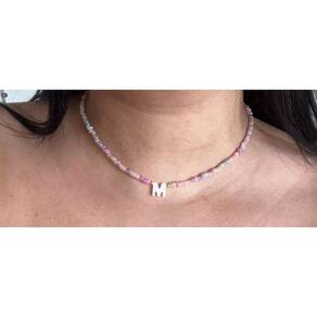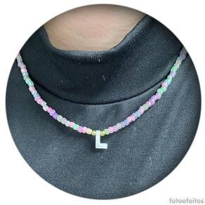 Colar gargantilha miçangas tons pasteis choker artesanal letra l b5595