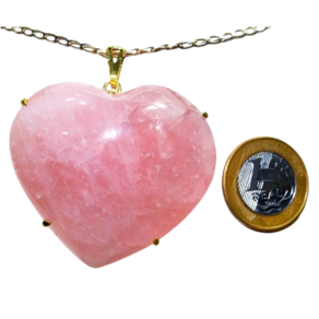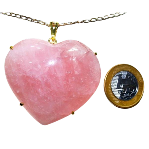 Pingente Gigante Coração pedra Quartzo Rosa ,boa qualidade ,castoação na garra dourado com perinha para passar o cordão Pedra Genuina com origem de garimpo ,lapidação e montagem manual