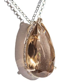 Este colar gota facetada de quartzo fumê em prata envolto com zircônia vai te encantar. Um acessório deslumbrante para destacar seu estilo.