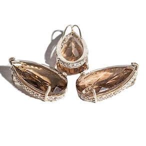 NOME DAS PEDRAS: Quartzo Fumê COR DAS PEDRAS: Marrom (Foto Ilustrativa) CORTE DAS PEDRAS: Gota Facetada CLARIDADE DAS PEDRAS: Brilhoso e Semi Transparente MEDIDA DAS PEDRAS: 28mm x 15mm (medidas aproximadas) PESO TOTAL DA JÓIA: 42 Quilates Aproximadamente (Varia de acordo com o estoque) MONTAGEM: Garra Prata 950 ORIGEM: Montagem Curvelo MG Por ser pedra natural, podem apresentar variações em suas tonalidades e grafismos. Há também a possibilidade de ocorrerem pequenas inclusões que irão se assemelhar a fissuras, mas que são normais de minerais autênticos de garimpo. Hidratação com óleo mineral.