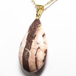 O colar de gota jaspe brecha dourado é uma opção ousada e cheia de personalidade. Adicione um toque de cor ao seu visual com estilo.