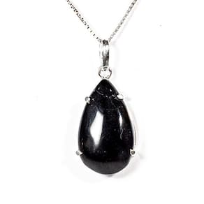 Pingente Gota Lisa Pedra Turmalina Preta Boa Qualidade Montagem na garra com perinha em Prata 950 para passar o cordão Pedra Genuina com origem garimpo lapidação e montagem manual