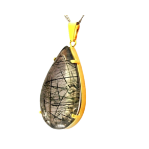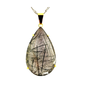Colar dourado com gota de turmalina incrustada - uma peça elegante e sofisticada para complementar qualquer look. Adquira já em seu acervo!
