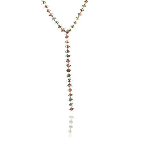 Esse colar é em formato de gravatinha com olho grego colorido, um verdadeiro encanto.