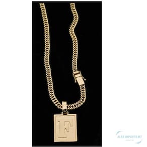 CORRENTE GRUMET DUPLO FECHO LATERAL DUPLO (7MM) & PINGENTE (LETRA) PERSONALIZADO (MEDIO) - BANHADO EM OURO 18K