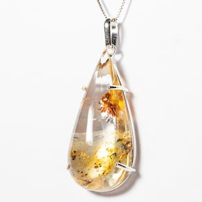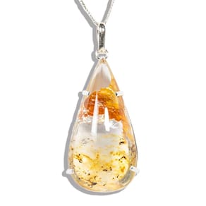 Colar Hematoide Com Dendrita 39mm Gota na Garra Prata 950, Pingente Gota Lisa Grande Pedra Especial Hematoide com Inclusão dendrita Natural de Garimpo Rarissima com Montagem na garra de Prata 950 com perinha para passar o corrente. Pedra Genuina com origem garimpo lapidação e montagem manual