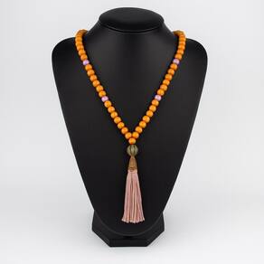 Colar Japamala Lilás 108 Madeira Contas 8mm Colar Japamala Lilás 108 Madeira Contas 8mm O Japamala Lilás de 108 contas é um colar de meditação e espiritualidade, confeccionado com contas de madeira natural de 8mm e delicados detalhes em lilás, cor associada à espiritualidade, intuição e transmutação de energias.