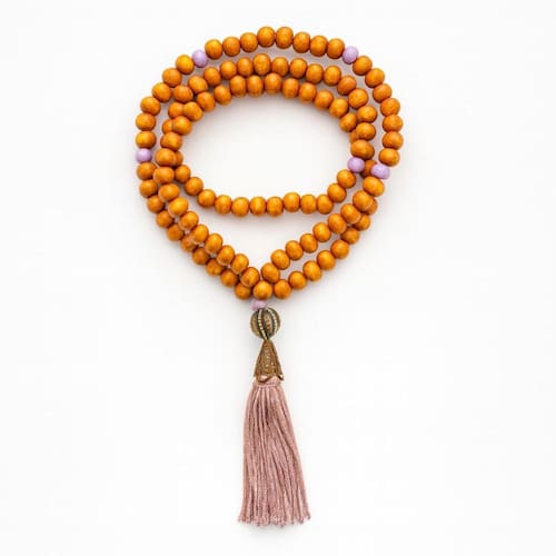 Colar Japamala Lilás 108 Madeira Contas 8mm Colar Japamala Lilás 108 Madeira Contas 8mm O Japamala Lilás de 108 contas é um colar de meditação e espiritualidade, confeccionado com contas de madeira natural de 8mm e delicados detalhes em lilás, cor associada à espiritualidade, intuição e transmutação de energias.