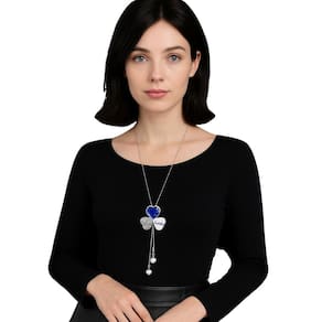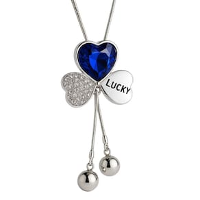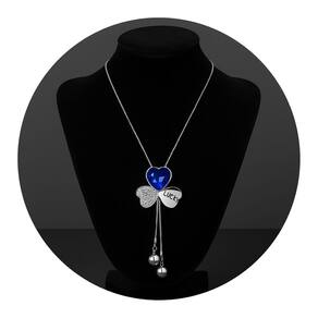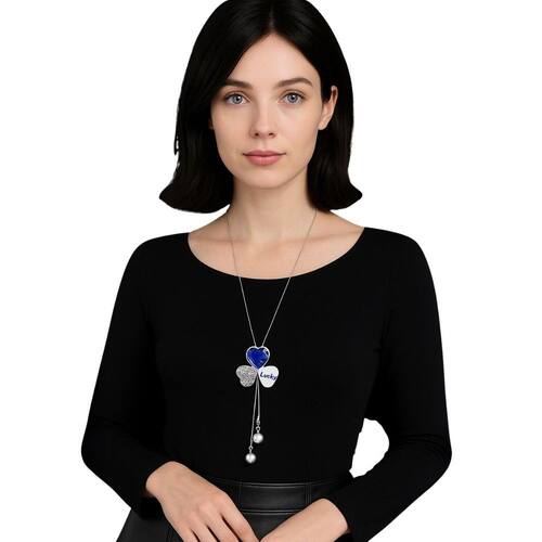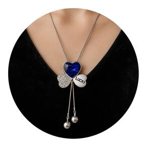 Colar Longo Coração Azul Pérolas Festa Elegante é um acessório marcante e cheio de personalidade. Possui pingente triplo com coração azul em cristal facetado, detalhe em coração cravejado e plaquinha “Lucky” que transmite charme e significado. As duas pérolas pendentes na ponta conferem movimento e delicadeza. Ideal para eventos especiais, como festas, jantares e casamentos, combina perfeitamente com looks clássicos ou modernos, acrescentando um toque de brilho e sofisticação ao visual.