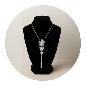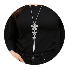 Colar Longo Prata com Flores de Cristal é um acessório delicado e cheio de brilho, perfeito para compor looks femininos e sofisticados. Seu pingente apresenta flores estilizadas com pétalas cravejadas de cristais brilhantes, criando um efeito luminoso encantador. O design alongado com hastes finas adiciona movimento e elegância, ideal para combinar com blusas lisas, vestidos ou sobreposições, valorizando o colo e o visual. Uma escolha versátil para ocasiões especiais ou para dar um toque refinado ao dia a dia.