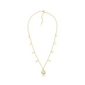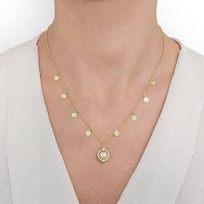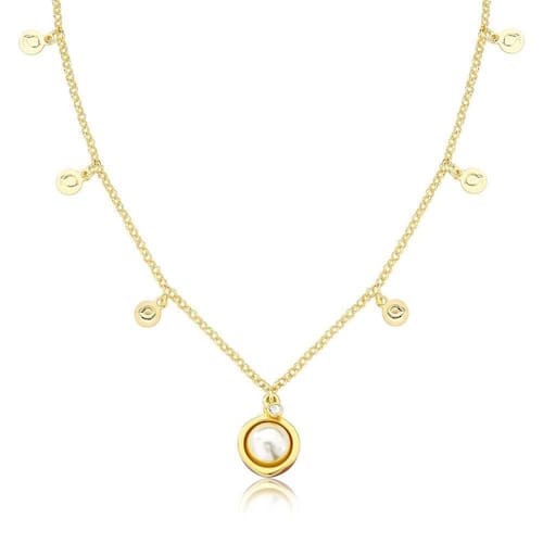Este colar foi elaborado com um lindo pingente simbolizando a macadâmia com uma pérola e esmaltação no verso, representando toda a beleza das macadâmias, junto à uma corrente de elos portugueses com pequenas medalhas timbradas com a noz. Seu Revestimento em Ouro torna essa peça única e delicada.