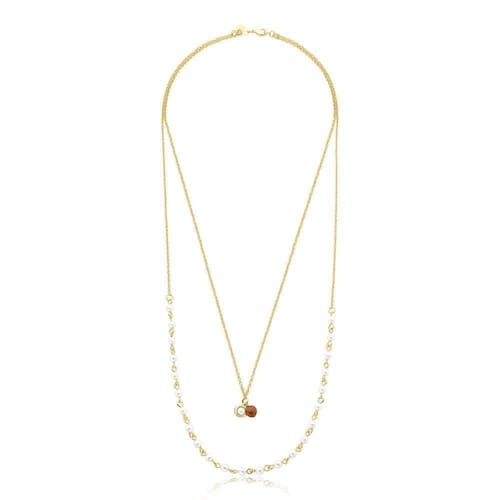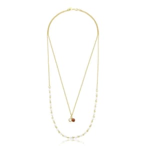 Este colar foi elaborado com um lindo pingente representando uma macadâmia, com pérola e esmaltação, junto à uma corrente dupla: sendo 1 corrente de elos portugueses e uma corrente com pérolas, revestidas em Ouro. Uma peça única e delicada, capaz de representar toda riqueza desse fruto.