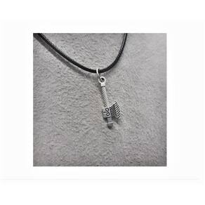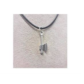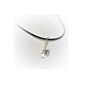 Colar Machado Viking Seriado Vikings Ragnar Lothbrok Cor: Prateado Colar em couro sintético 48 cm preto
