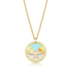 A VL accessoires traz à você mais um lançamento, como parte da nossa Coleção Tennis. Para os admiradores e apaixonados por Beach Tennis, esse colar foi elaborado com ampla riqueza de detalhes! Seu design é único e exclusivo VL, trazendo as raquetes cruzadas em medalha esmaltada e uma pequena bolinha esmaltada nas cores Neon do esporte! Uma joia irreverente e contemporânea, para levar sua paixão pelo esporte por onde for. Confira também nossos brincos da Coleção Beach Tennis e monte seu conjunto!
