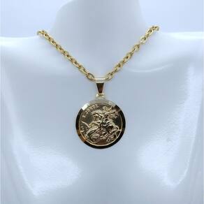 Colar Medalha São Jorge Folheado a Ouro 18K Descrição: Modelo: Colar Medalha São Jorge Folheado a Ouro 18K Referência: GRL-021 Corrente: 45cm Pingente: 23mm Informações adicionais: Garantia: 3 meses quanto ao banho. Peças são hipoalergênicas, pois não possuem níquel em sua composição. Marca: Pinter Joias