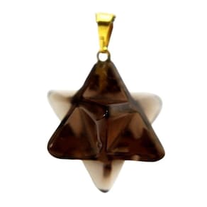Pingente Merkaba Pedra natural cristal Fumê de garimpo pedra com exelente lapidação em formato estrela merkaba