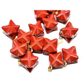Pingente Merkabah pedra natural Jaspe Vermelho de garimpo pedra com exelente lapidação em formato de estrela merkabah. Montagem Dourado.