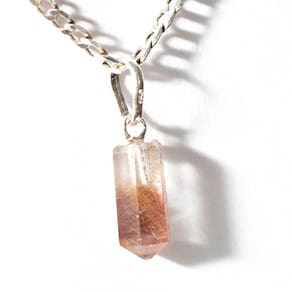 Pingente Micro Pontinha Cristal com Fios de Rutilo boa qualidade, pedra natural de garimpo, lapidação artesanal montado Pino e Presilha na Prata 950, ideal para colar e pulseiras, já vai montado
