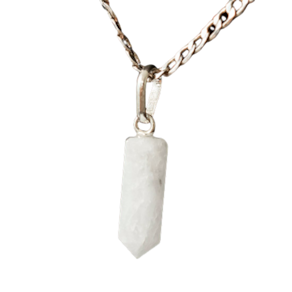 Pingente Micro Pontinha Quartzo Leitoso boa qualidade, pedra natural de garimpo, lapidação artesanal montado Pino e Presilha na Prata 950, ideal para colar e pulseiras, já vai montado