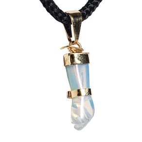 Proteja-se com estilo! Nosso mini pingente de figa em quartzo verde é o amuleto perfeito para afastar energias negativas e atrair boas vibrações. Compacto e elegante, ele combina com qualquer look, trazendo proteção e elegância em um só acessório. Adquira já o seu e sinta a diferença! O que irá receber: 1- Colar com Pingente em pedra Natural pronto para uso Detalhes do Cordão ou Colar: Cordão ou Colar, feito de fio encerado preto com fecho ajustável com corrente Fecho Lagosta (Niquelado) Dimensões: 50 cm comprimento x 3 mm largura Peso aproximado:1,2 gramas (Leve) Detalhes do Pingente: Figa Mini Pingente Montagem Dourada Amuleto da sorte Pedra Olho de tigre , lapidação totalmente artesanal com polimento por vibração a montagem é feita emvolto da peça com Lapidação suave não machuca quando estiver usando NOME DAS PEDRAS: Pedra da Lua COR DAS PEDRAS: Vide Foto CORTE DAS PEDRAS: Figa Amuleto com Polimento Vibrado CLARIDADE DAS PEDRAS: Brilhoso MEDIDA DAS PEDRAS: 20mm em média PESO TOTAL DA JOIA: 05 Quilates METAL: Niquelado dourado ORIGEM: Montagem Curvelo MG Por ser pedra natural, podem apresentar variações em suas tonalidades e grafismos. Há também a possibilidade de ocorrerem pequenas inclusões que irão se assemelhar a fissuras, mas que são normais de minerais autênticos de garimpo. Hidratação com óleo mineral Marca: CristaisdeCurvelo
