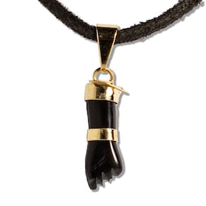 Proteja-se com poder! O mini pingente de figa em obsidiana negra é o amuleto ideal para bloquear energias negativas e promover segurança. Discreto e sofisticado, ele é o acessório perfeito para quem busca proteção e estilo em um só item. Adquira o seu e sinta-se protegido(a) em qualquer lugar! O que irá receber: 1- Colar com Pingente em pedra Natural pronto para uso Detalhes do Cordão ou Colar: Cordão ou Colar, feito de fio encerado preto com fecho ajustável com corrente Fecho Lagosta (Niquelado) Dimensões: 50 cm comprimento x 3 mm largura Peso aproximado:1,2 gramas (Leve) Detalhes do Pingente: Figa Mini Pingente Montagem Dourada Amuleto da sorte Pedra quartzo goiba , lapidação totalmente artesanal com polimento por vibração a montagem é feita emvolto da peça com Lapidação suave não machuca quando estiver usando NOME DAS PEDRAS: Obsidiana Negra COR DAS PEDRAS: Vide Foto CORTE DAS PEDRAS: Figa Amuleto com Polimento Vibrado CLARIDADE DAS PEDRAS: Brilhoso MEDIDA DAS PEDRAS: 20mm em média PESO TOTAL DA JOIA: 05 Quilates METAL: Niquelado dourado ORIGEM: Montagem Curvelo MG Por ser pedra natural, podem apresentar variações em suas tonalidades e grafismos. Há também a possibilidade de ocorrerem pequenas inclusões que irão se assemelhar a fissuras, mas que são normais de minerais autênticos de garimpo. Hidratação com óleo mineral Marca: CristaisdeCurvelo