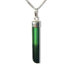 Colar canudo turmalina verde em prata 950. A beleza da pedra combinada com a elegância da prata para um acessório deslumbrante. Adquira já!