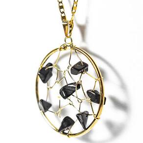 Pingente Filtro dos Sonhos com Pedra de Turmalina Preta Banhado a Dourado