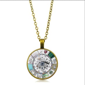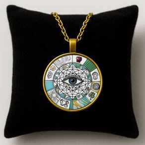 Colar Olho Místico com Pingente Redondo é um acessório cheio de simbolismo e estilo. O pingente circular traz o desenho de um olho centralizado envolto por padrões geométricos e elementos esotéricos coloridos, que remetem à proteção e espiritualidade. A corrente em tom preto contrasta perfeitamente com os detalhes vibrantes do pingente, criando um visual moderno e único. Ideal para quem gosta de acessórios místicos, alternativos ou deseja dar um toque de personalidade ao look.