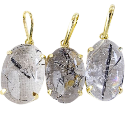 Deslumbre com o colar oval de turmalina incrustada no cristal, uma joia refinada que adiciona elegância e sofisticação a qualquer look.